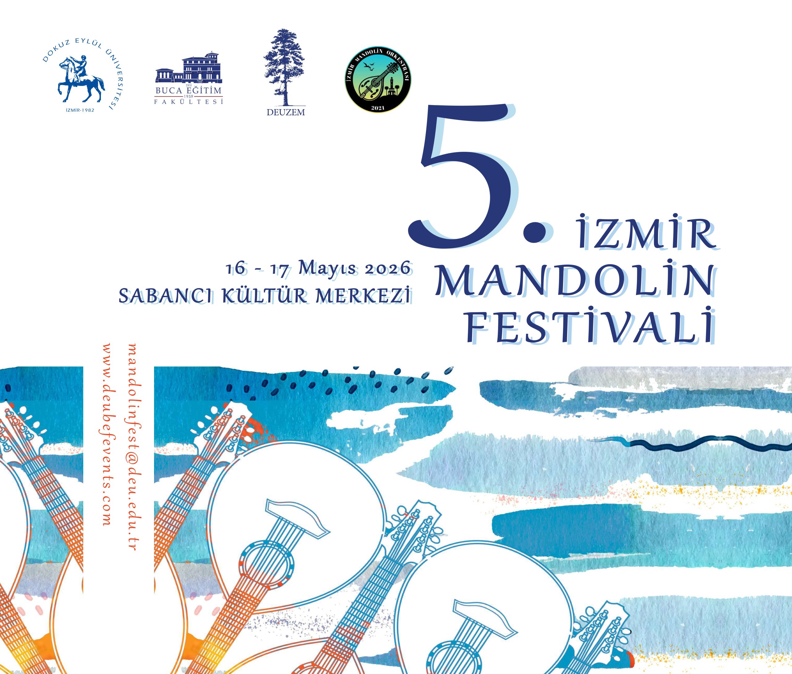 Dokuz Eylül Üniversitesi’nin köklü bir tarihe sahip Buca Eğitim Fakültesi, toplumsal katkı sağlamanın önemli bir aracı olarak gördüğü sanatsal bir etkinliğe ev sahipliği yapıyor. Birincisini 2022 yılında gerçekleştirdiğimiz İzmir Mandolin Festivali’nin bu yıl beşincisini gerçekleştirecek olmanın heyecanıyla tüm mandolin dostlarını 16-17 Mayıs 2026 tarihlerinde üniversitemiz Sabancı Kültür Merkezi’ne bekliyoruz.